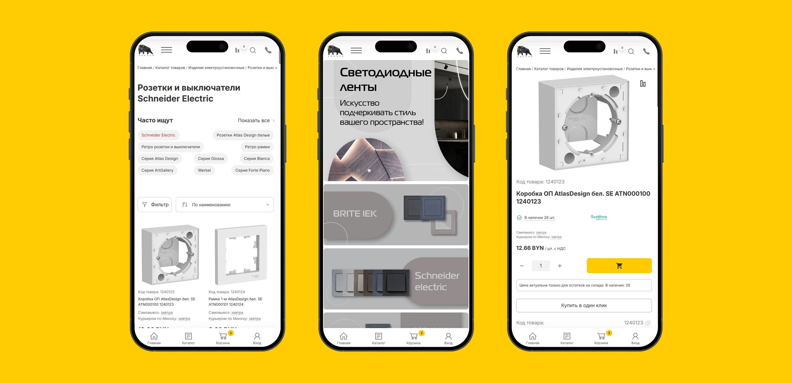 Проект начинался с конкретных технических требований. Нужно было проработать три ключевые страницы — главную, каталог и карточку товара — в трех разрешениях: