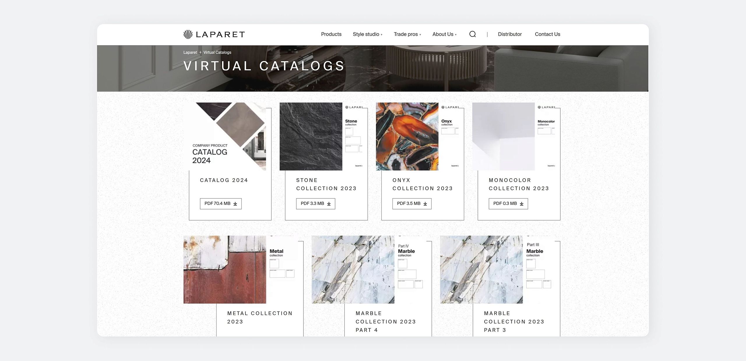 Laparet — производитель и дистрибьютор плитки. Компания выпускает коллекции под камень, мрамор, оникс, металл и другие материалы, а ее производственные площадки находятся в нескольких странах.