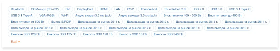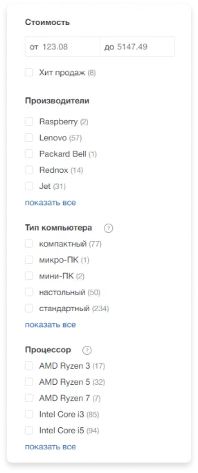 - Подсказки в фильтре для характеристик
