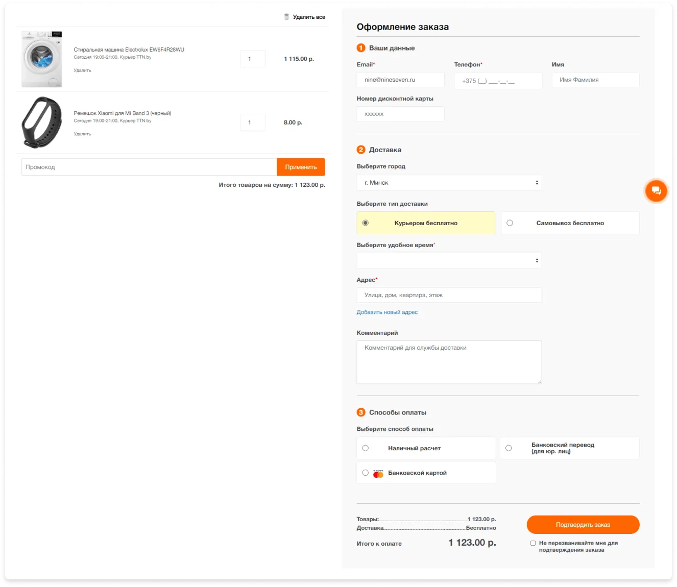 Для работы с удобным временем доставки на бэкенде была реализована целая система возможности доставки магазином в определенные промежутки, которая отражают реальную загруженность компании с учетом региональности (ttn.by работает на всю Беларусь).