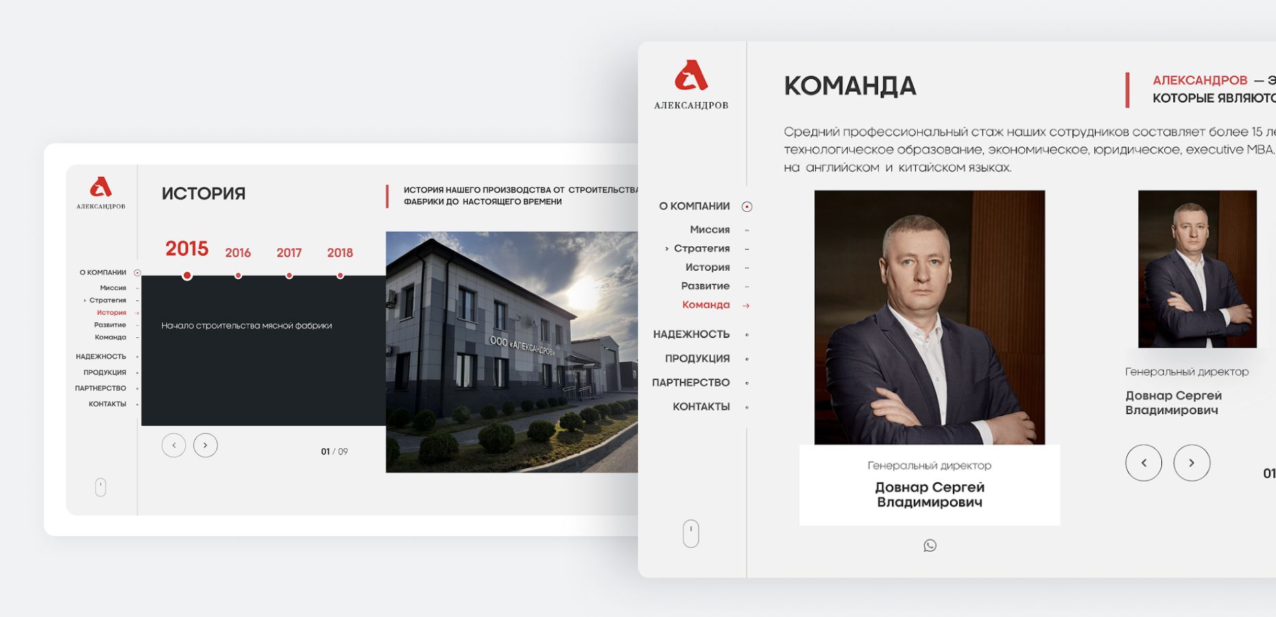 - слайдер с историей компании;