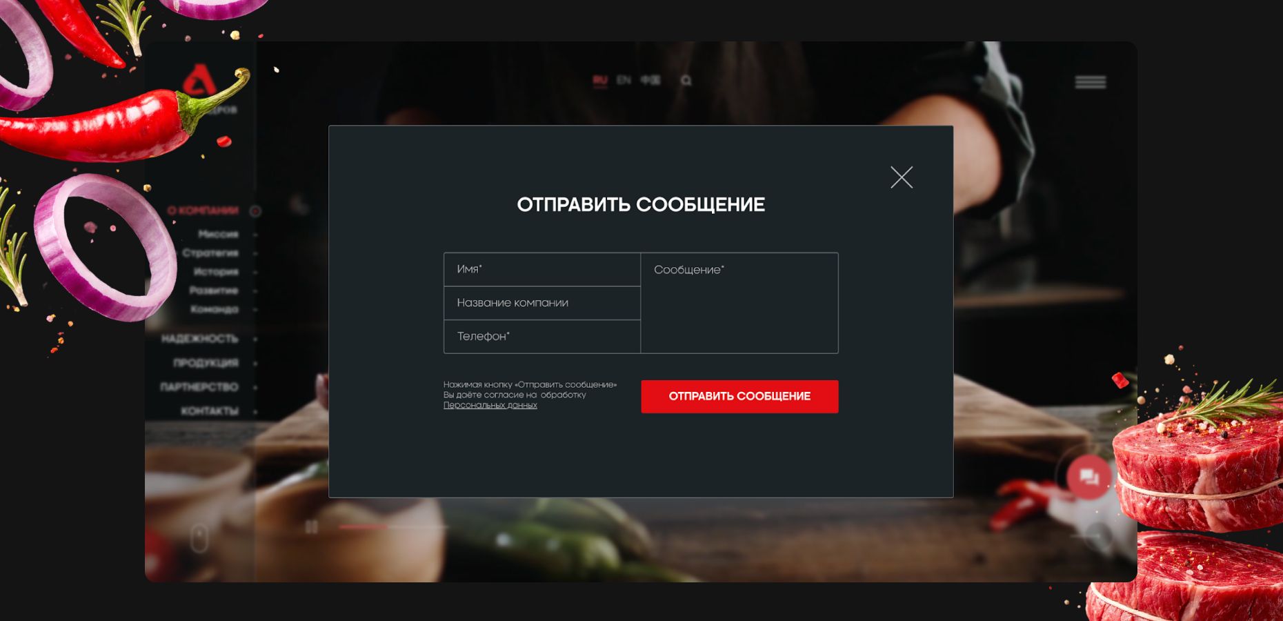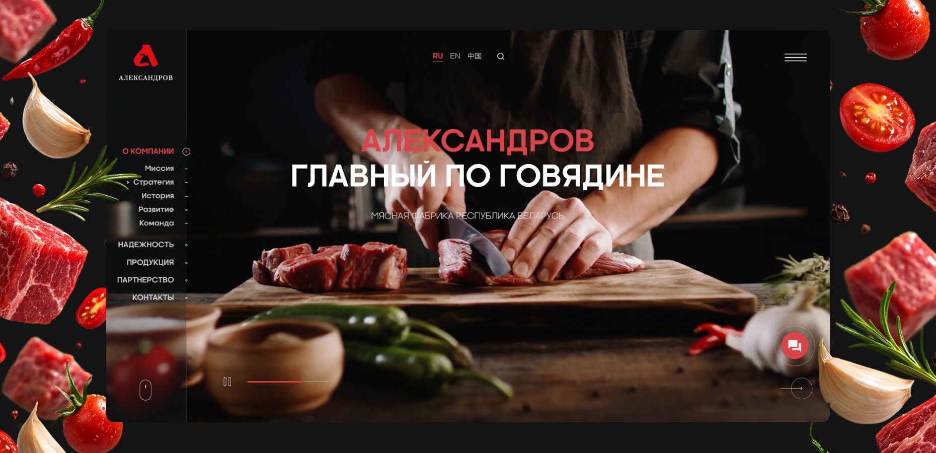 Создать корпоративный сайт с эксклюзивным дизайном для презентации продукции мясокомбината на международном рынке, прежде всего для китайских B2B-партнёров, обеспечив мультиязычность, мультиплатформенность и формирование доверия к бренду.
