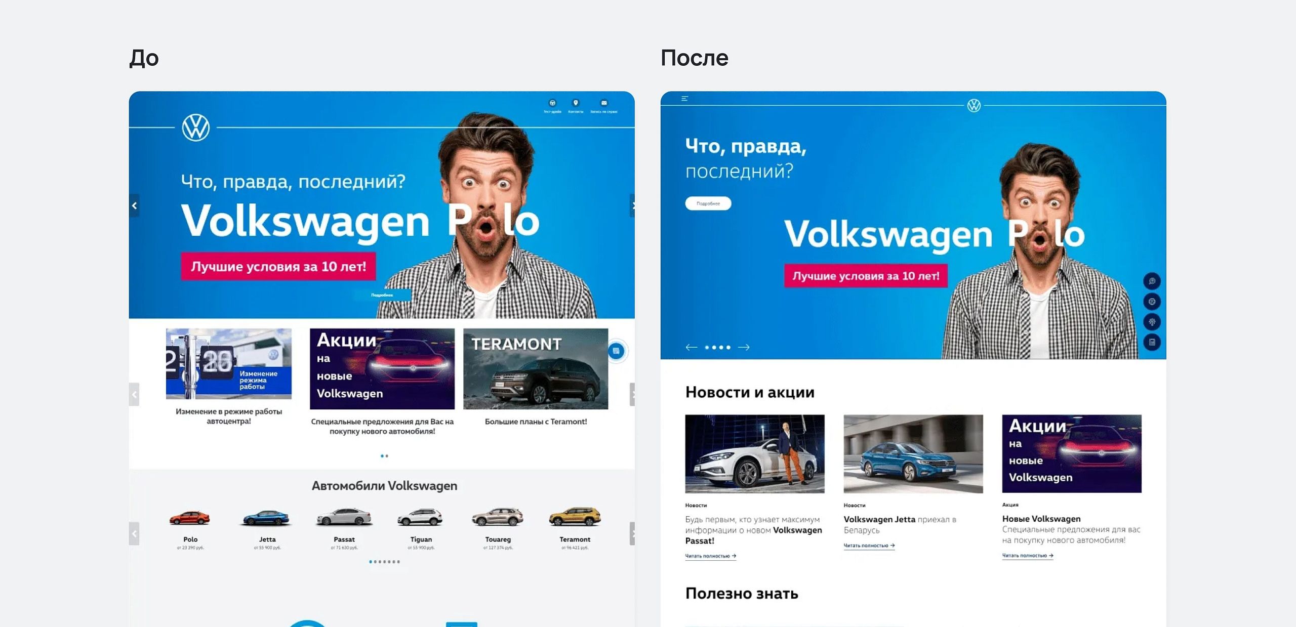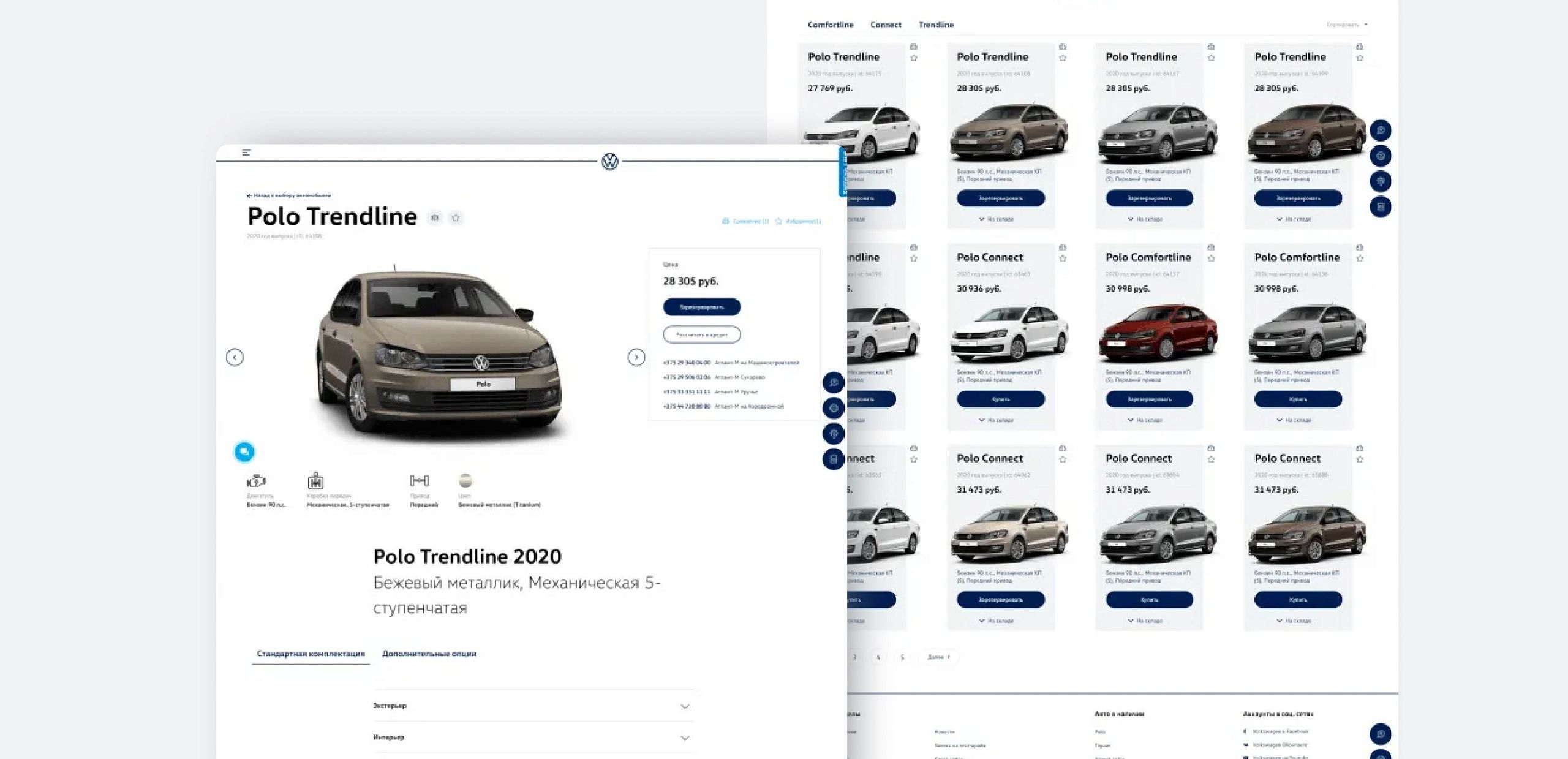 Дизайн-гайды «Volkswagen» разрабатываются в Германии, поэтому ключевой задачей было строгое соответствие официальной документации. Отступы, кнопки, сетка, шрифты и размеры должны были полностью совпадать с мировыми стандартами бренда.