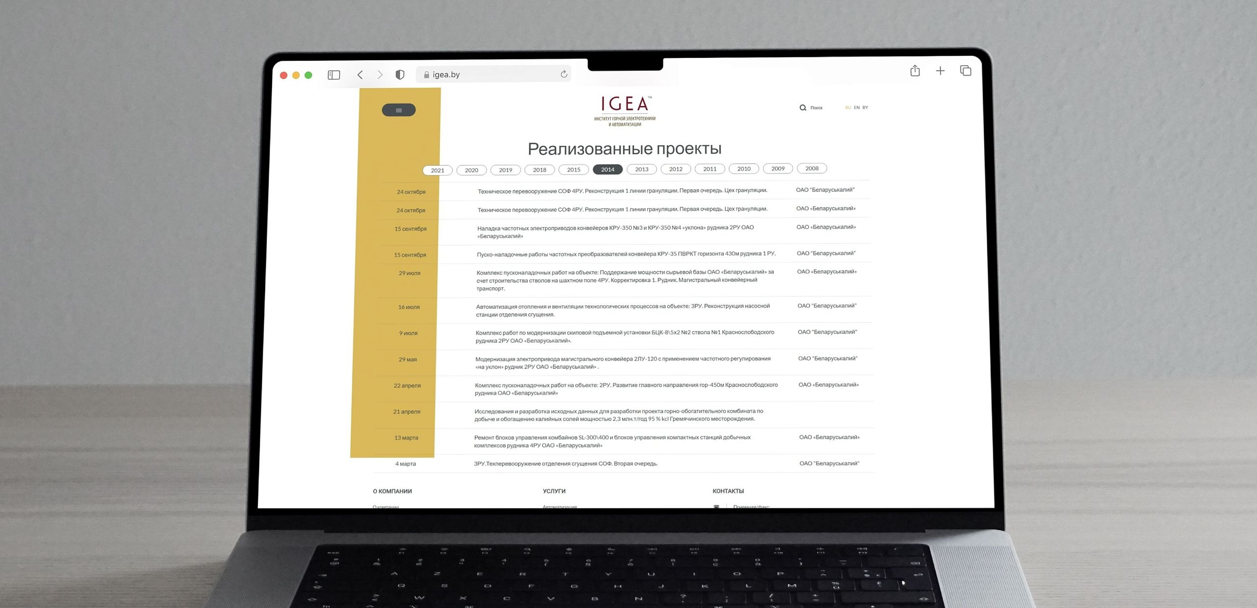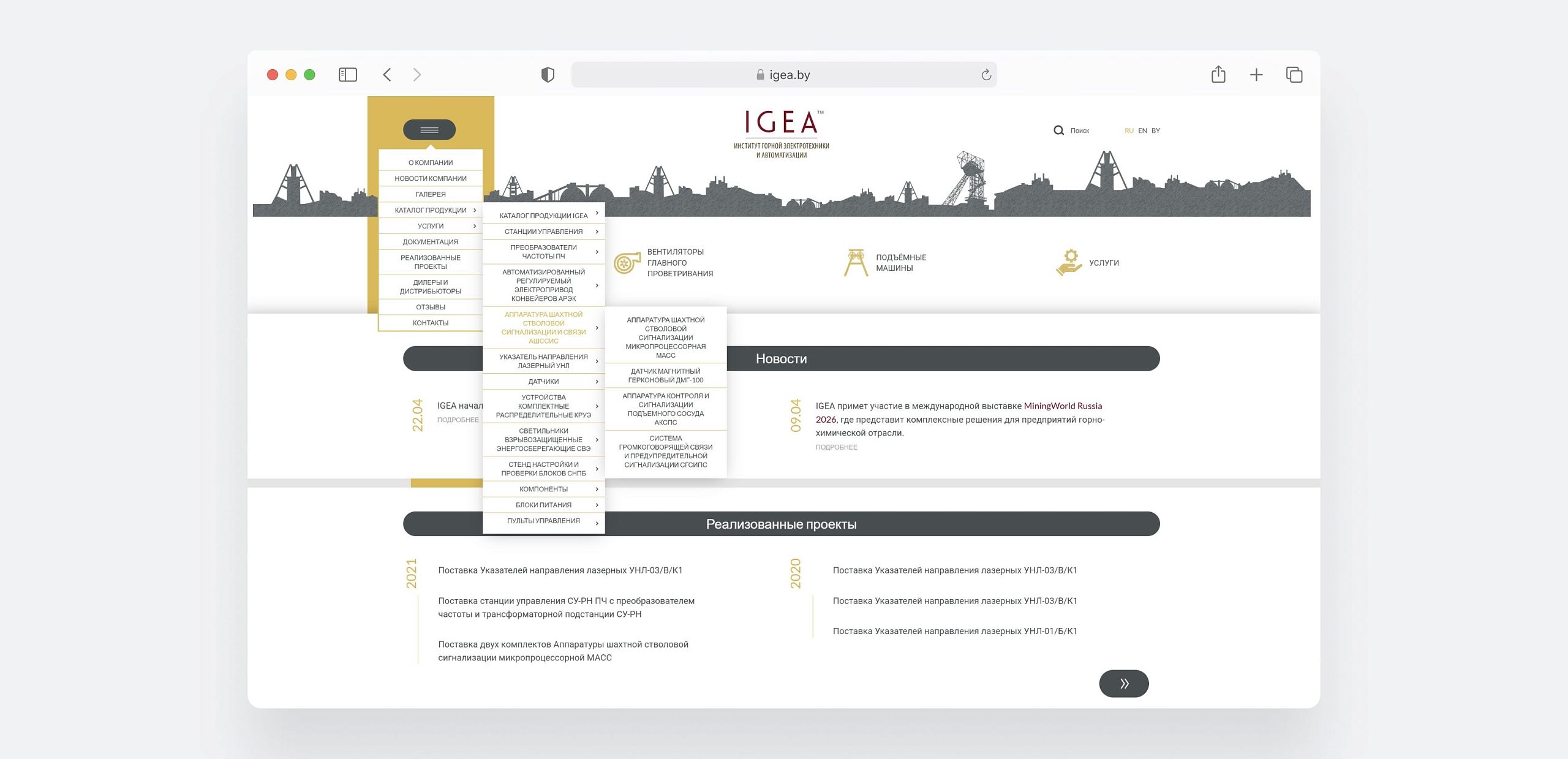 «Институт горной электротехники и автоматизации» — IGEA. Компания занимается автоматизацией и модернизацией предприятий горно-химической промышленности, а также специализируется на научно-исследовательских и проектных работах в отрасли.