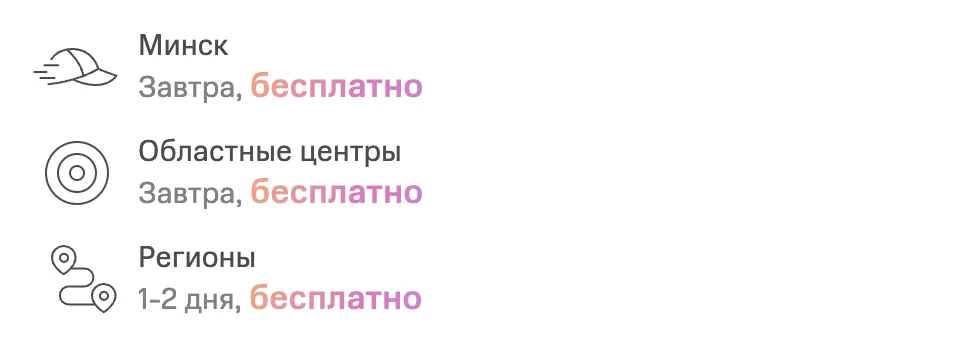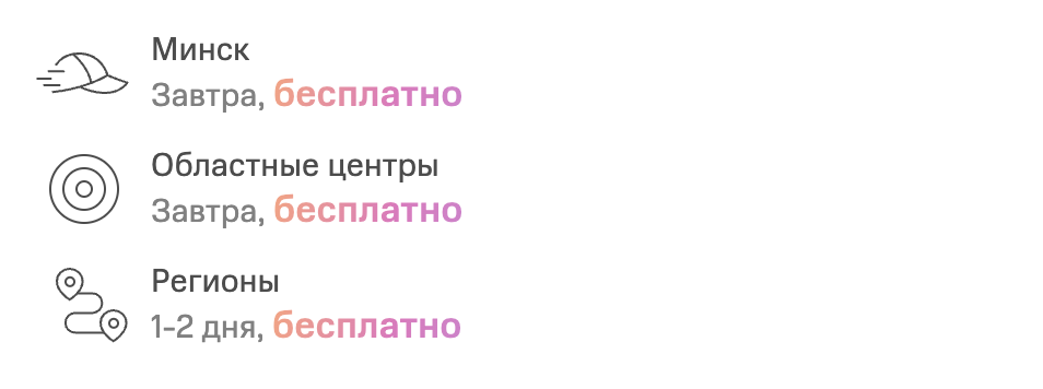 Другой пример — бесплатная доставка. Если в CRM есть информация, что товар можно бесплатно доставить в Москву или Минск, система добавляет соответствующую плашку.