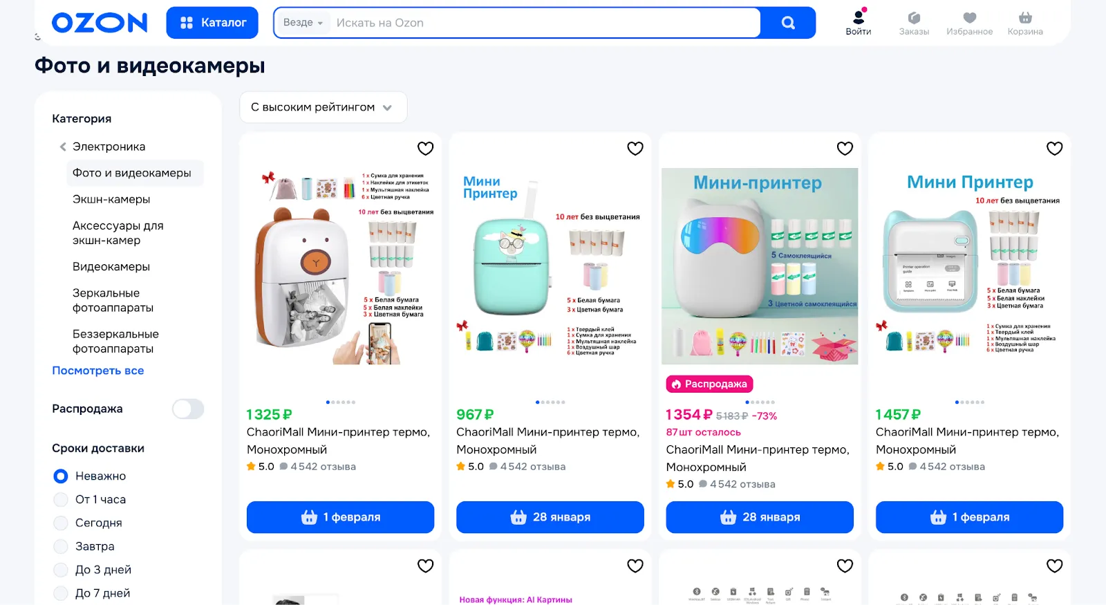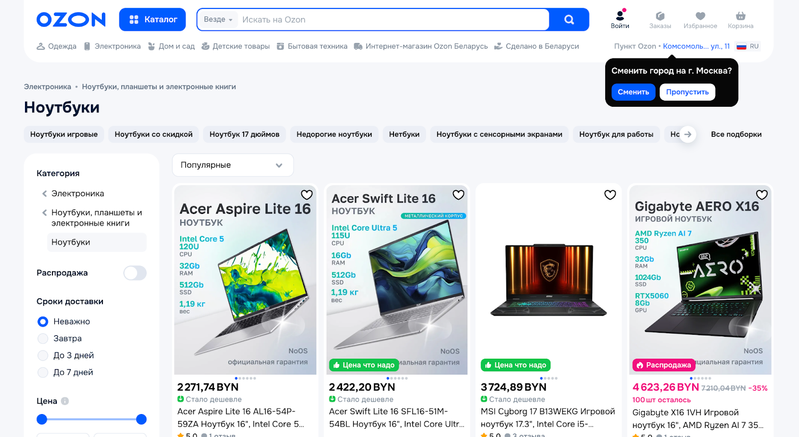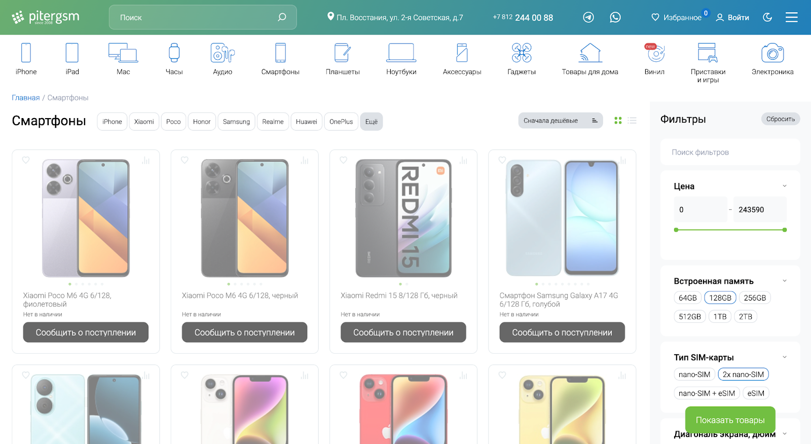 Прямо в листинге выводится информация о наличии на складах, чтобы покупатель сразу видел, можно ли заказать товар.