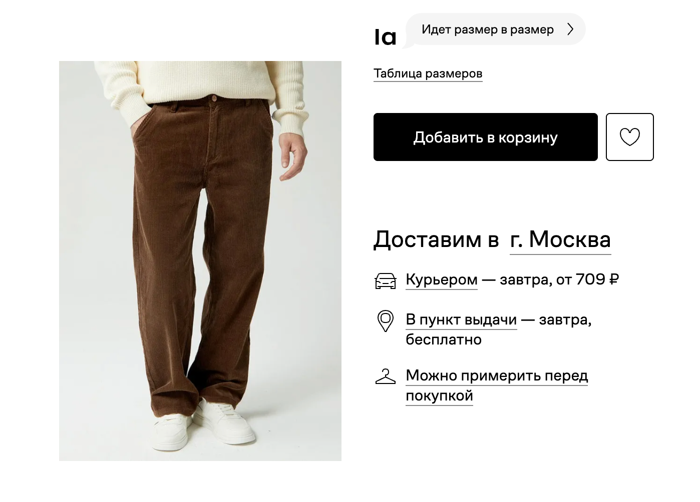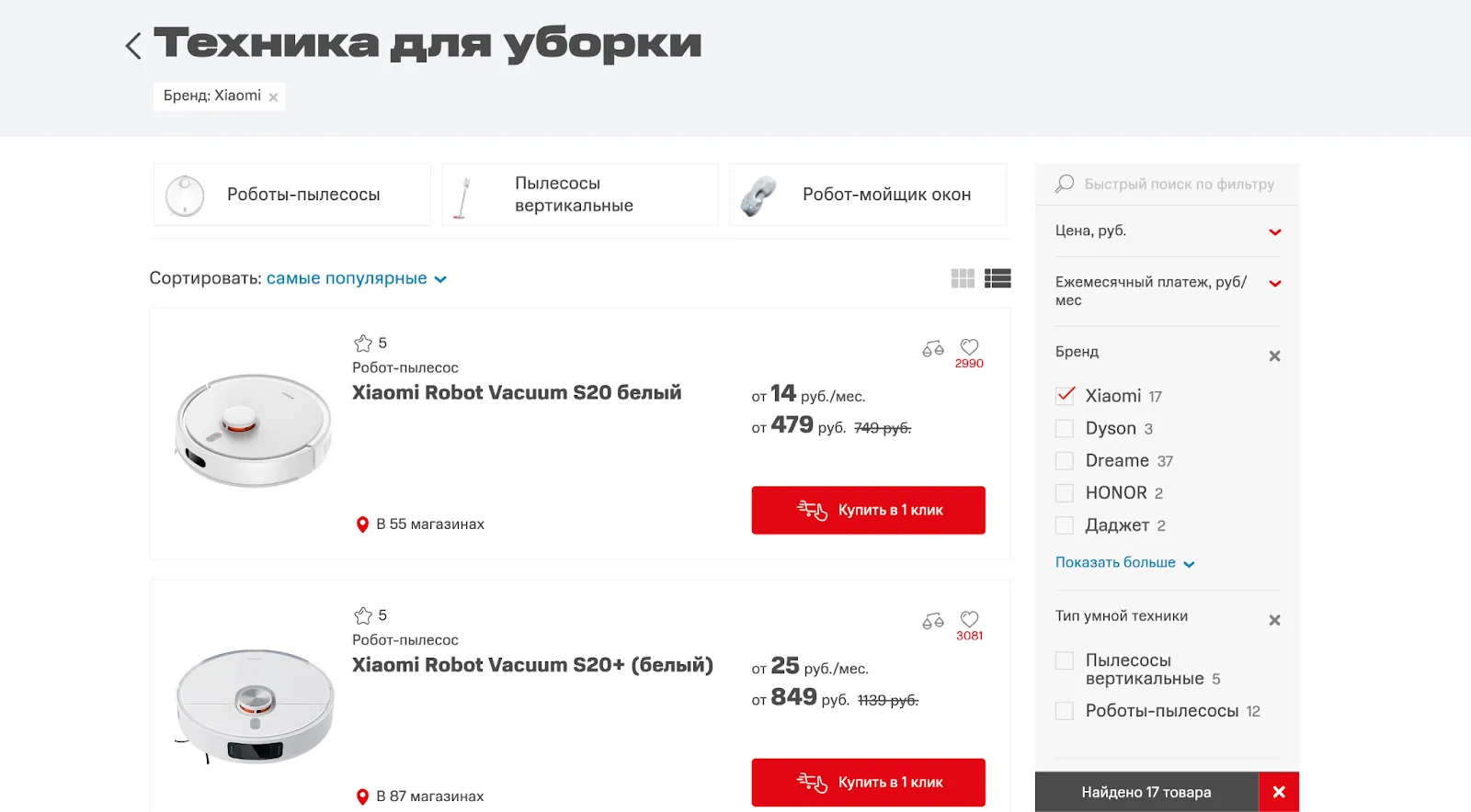 Кнопки «В корзину» и «Купить в 1 клик» всегда на видном месте.