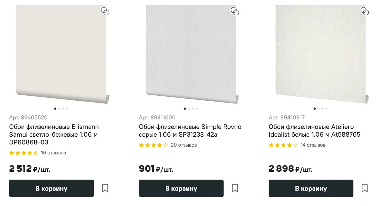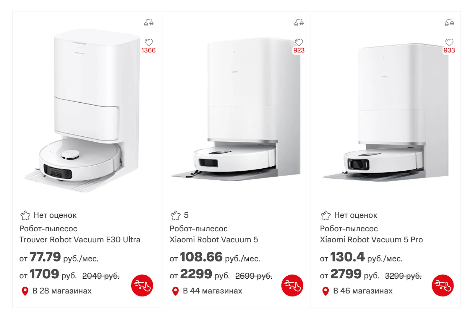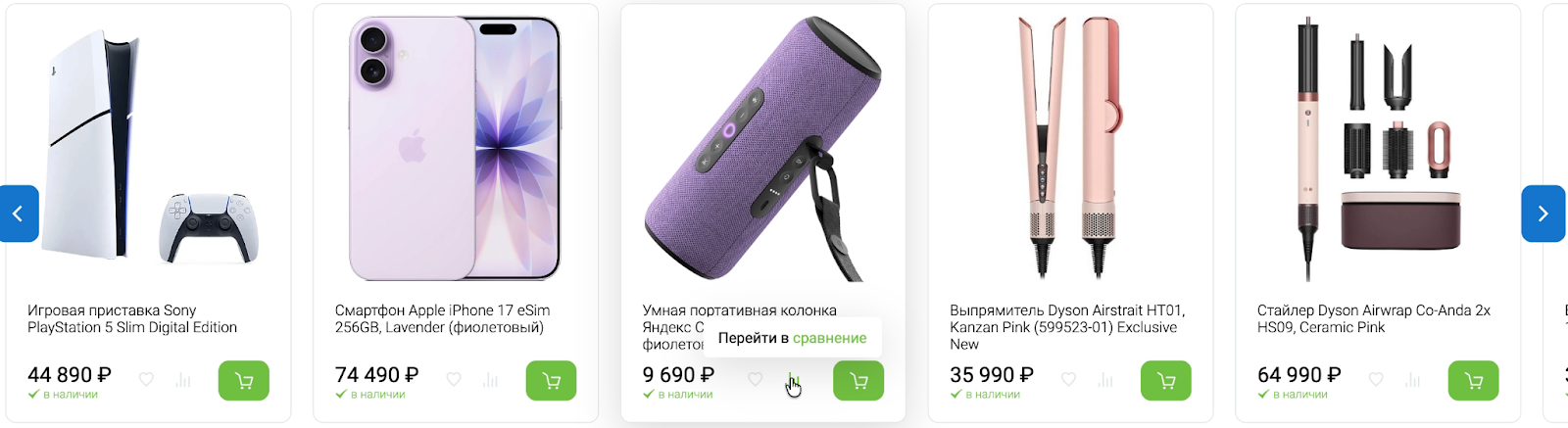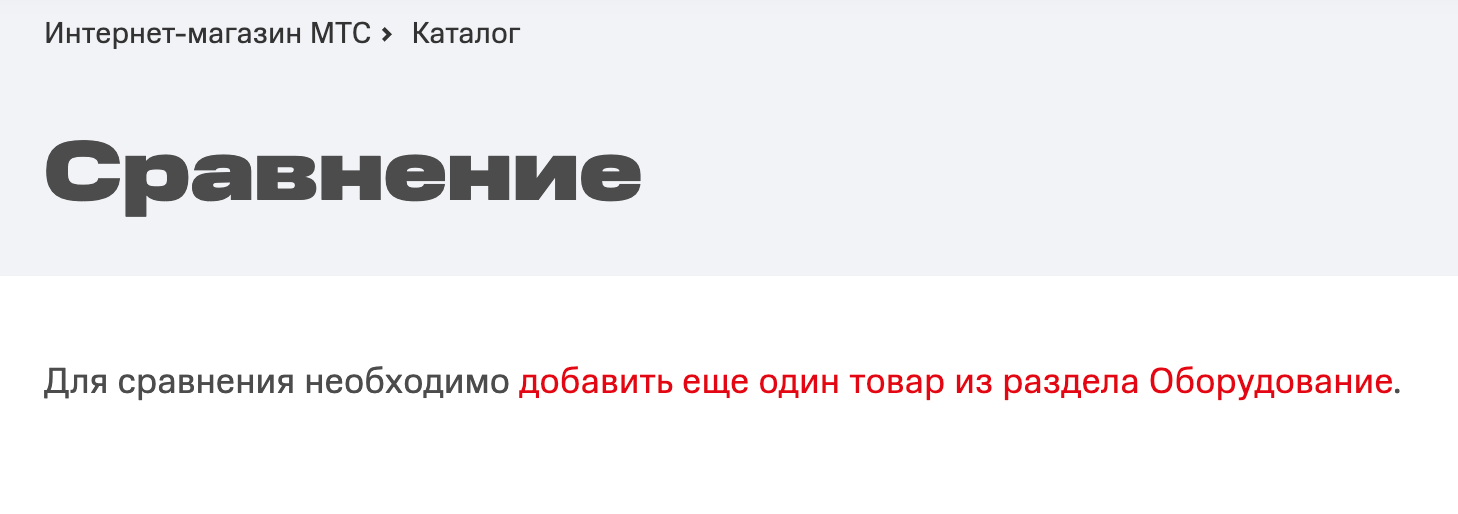 Функция сравнения нужна, когда пользователь выбирает между несколькими вариантами и хочет быстро увидеть, чем они отличаются. Добавить товар в сравнение можно прямо из листинга или карточки товара.