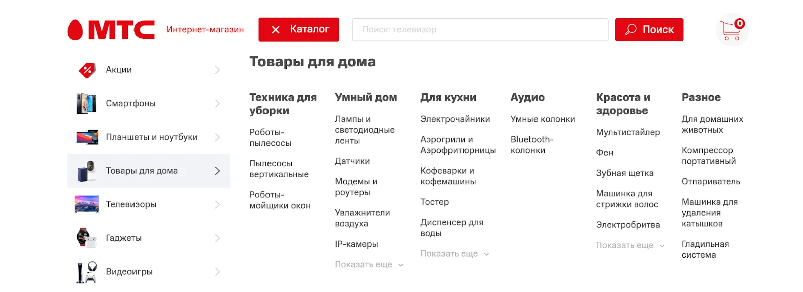 Первый уровень каталогаГлавная задача первого уровня — не дать пользователю уйти