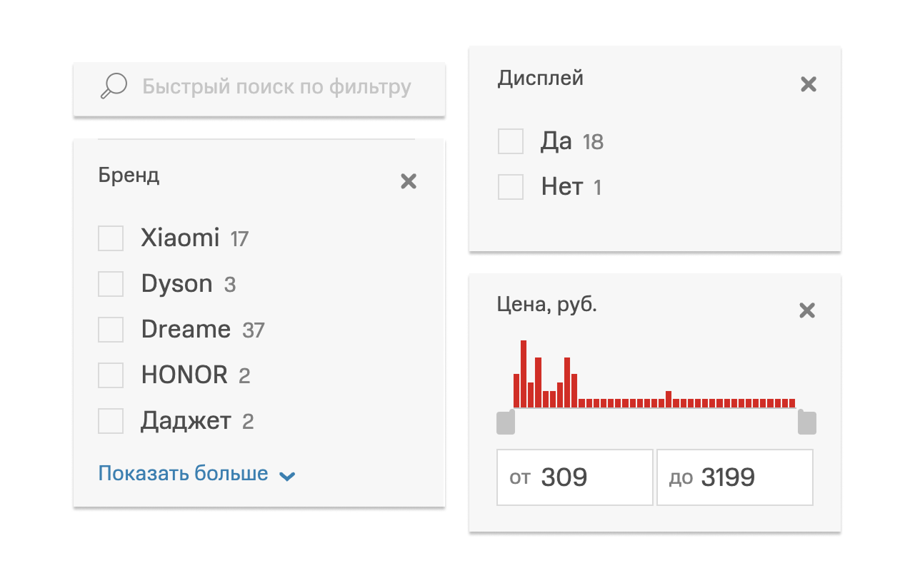 Быстрые ссылки — это преднастроенные фильтры, оформленные в виде удобных кнопок или ссылок. Они помогают пользователям сразу переходить к нужным подборкам товаров без необходимости вручную настраивать фильтры.