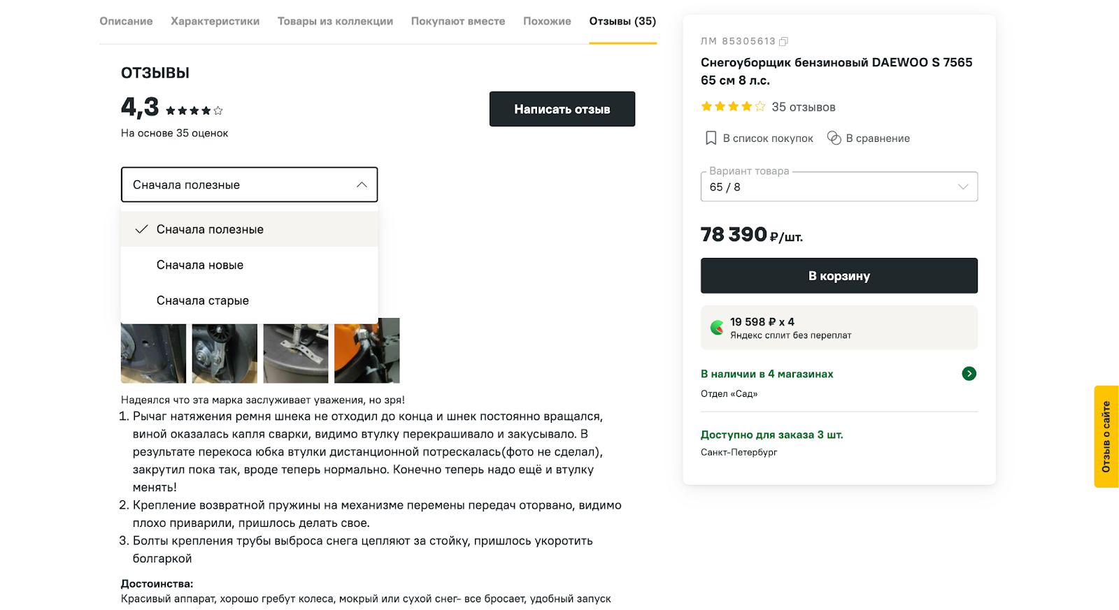 Отзывы и рейтинг — если есть