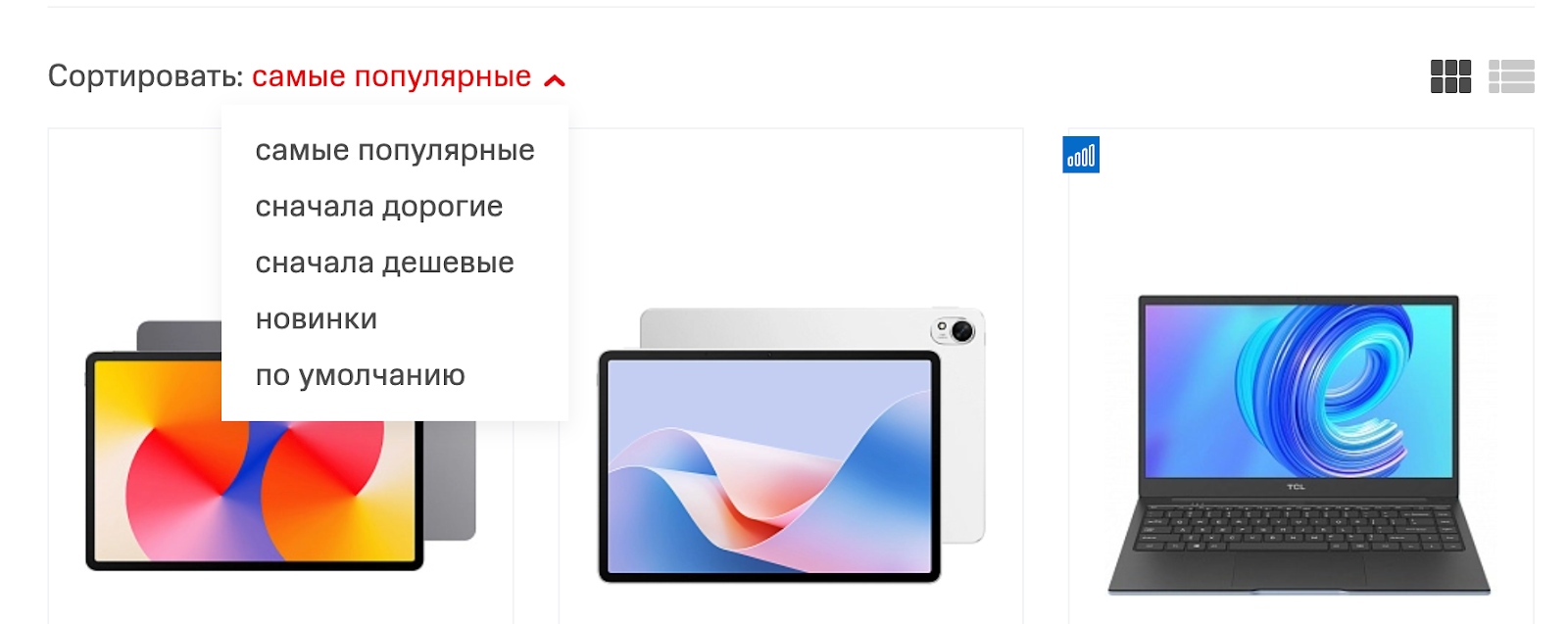 Порядок расположения — можно задавать вручную или автоматически на основе правил (например, по популярности или цене)