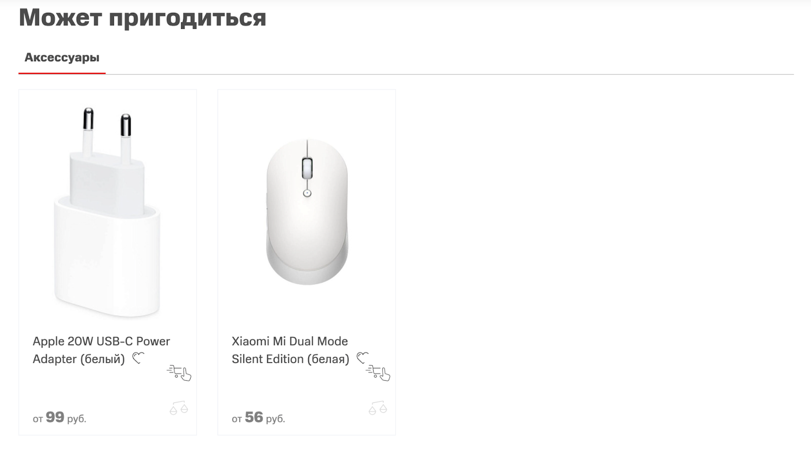 Название — короткое и понятное, например, «Рекомендуем к покупке» или «Полезные аксессуары»