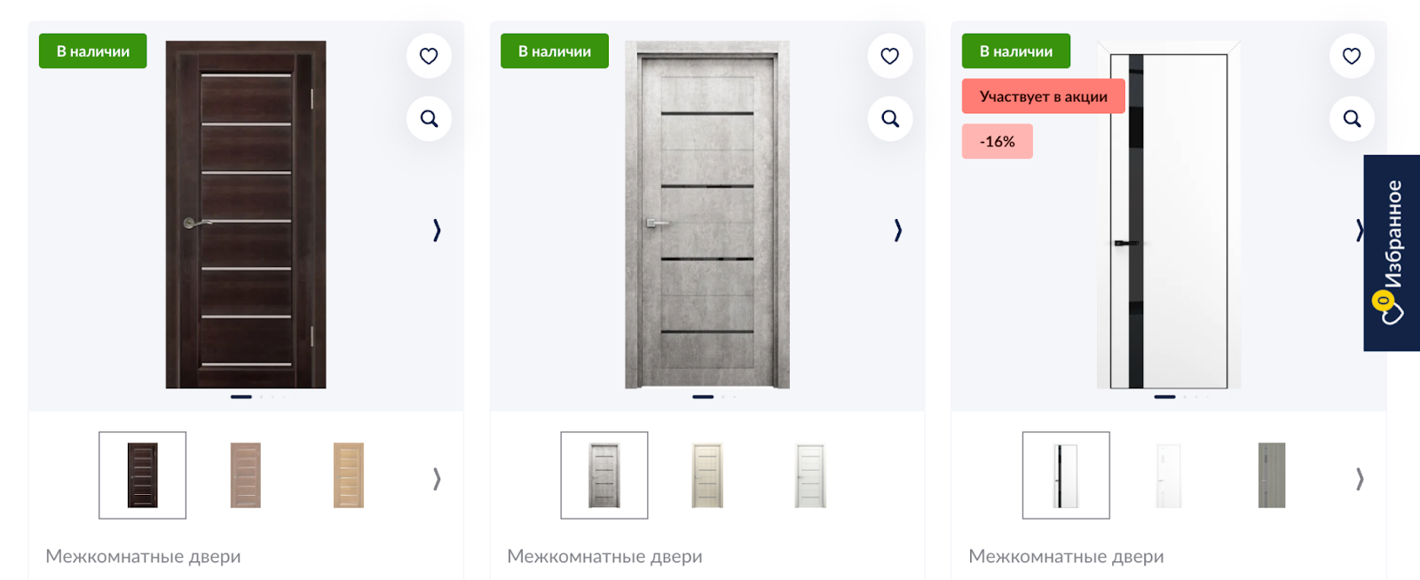 Если у товара несколько фото, в листинге они отображаются слайдером. Переключение кадров происходит при перемещении мыши вдоль изображения, без кликов.