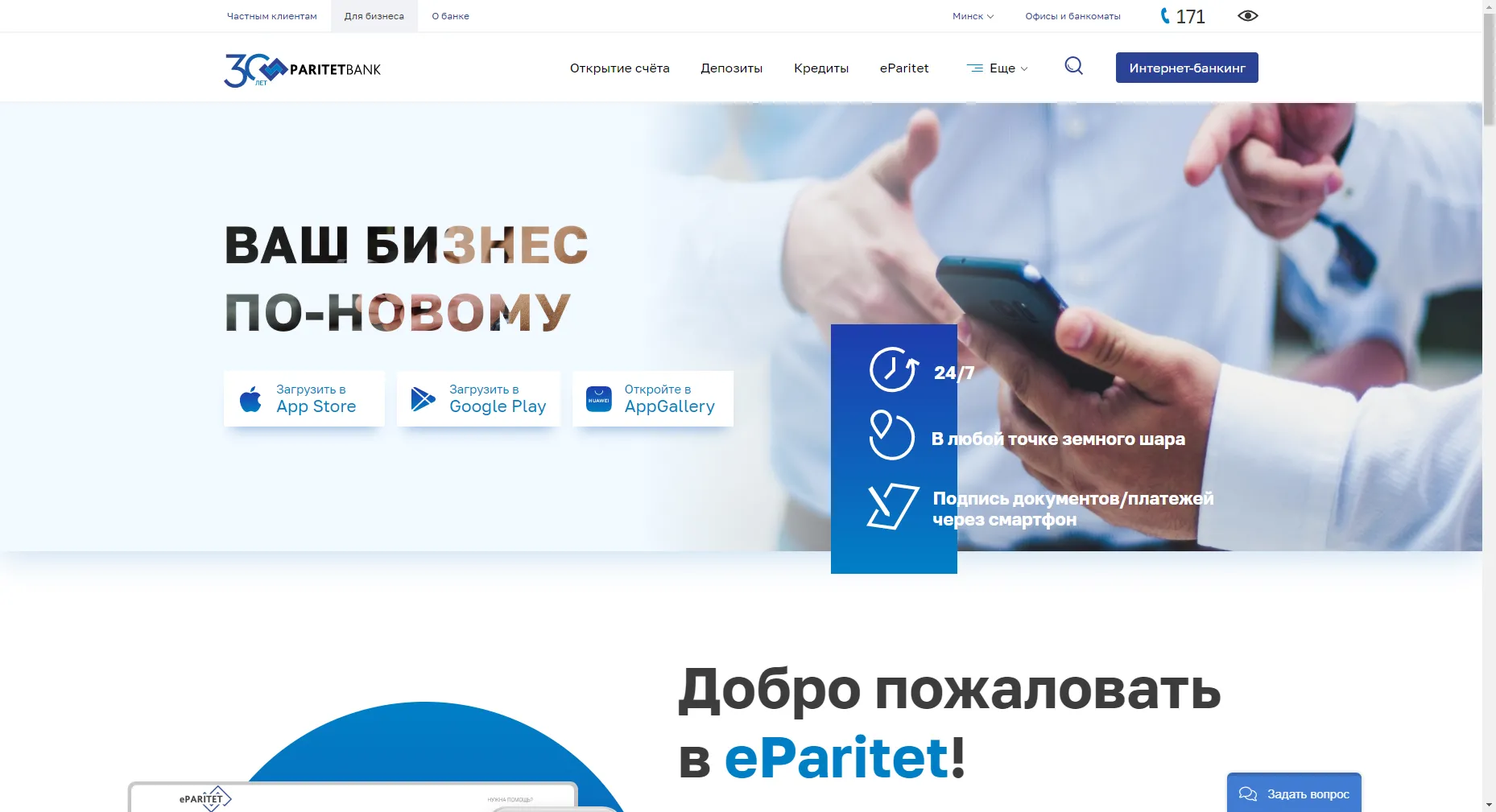 Мобильный Банк и Интернет-банкинг для бизнеса eParitet.