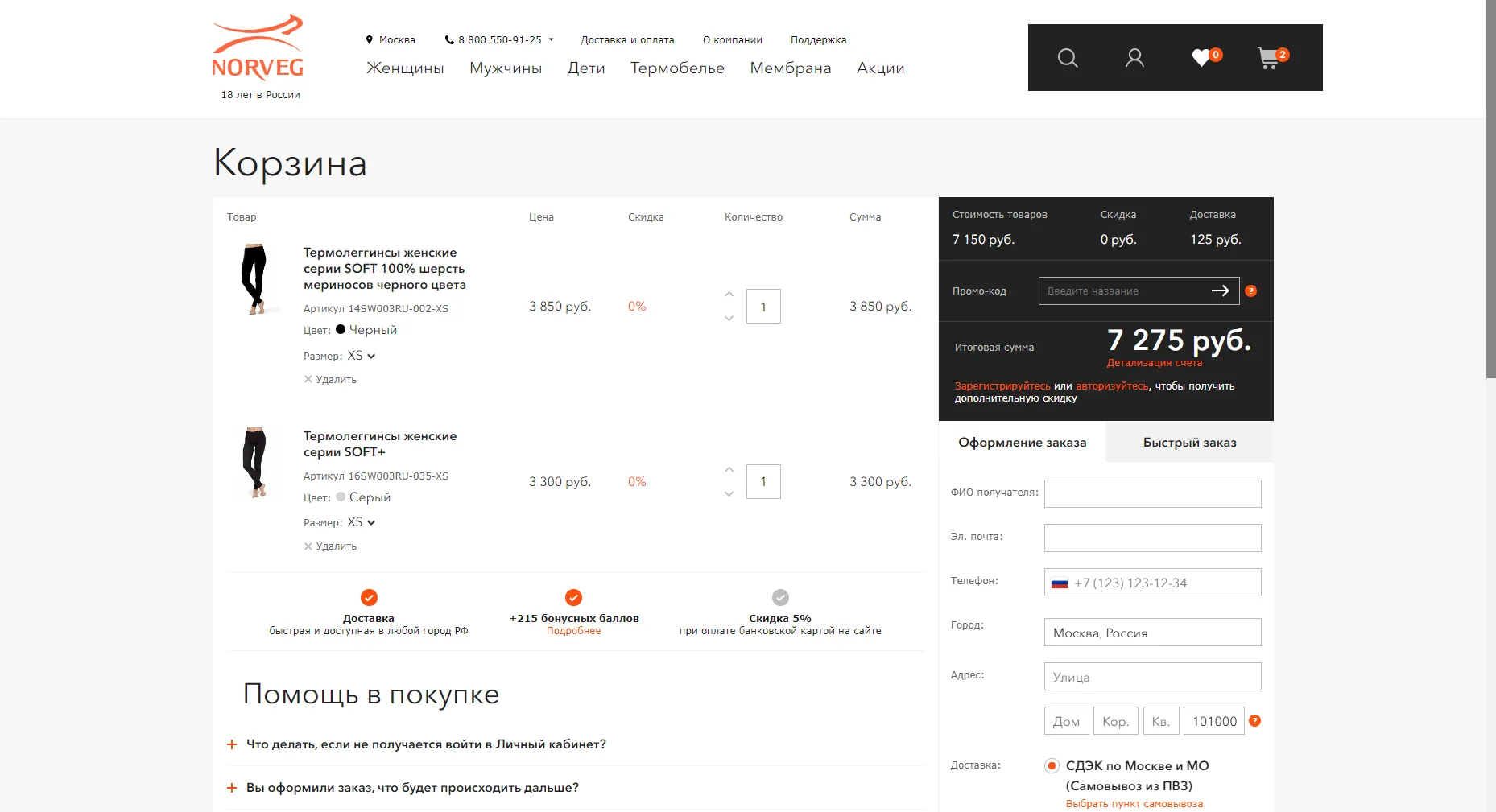 Посмотреть сайт в работе:norveg.ru